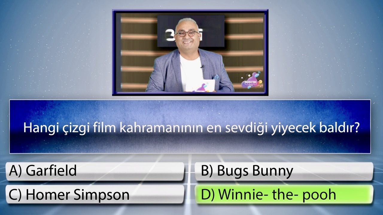 Moderatörümüz çoktan seçmeli sorularla yarışmayı başlatır. Katılımcılar akıllı telefonları üzerinden anlık yanıt vererek doğru cevap sayısı ve hızlarına göre puan toplar.
